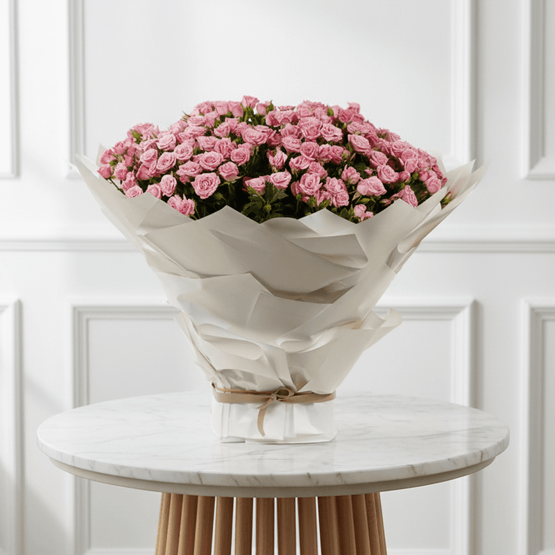 A dreamy arrangement of 50 delicate pink baby roses, perfectly wrapped to capture elegance and charm. Soft, sweet, and bursting with love, this bouquet is made to delight — ideal for celebrating tender moments, expressing affection, or simply brightening someone’s day with its graceful beauty.