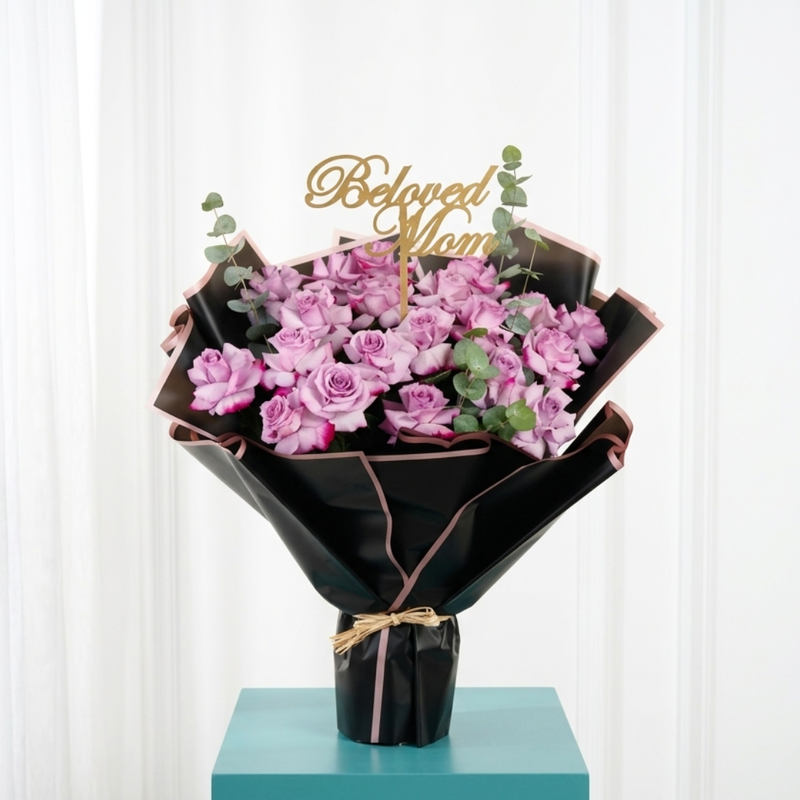 Rouge Radiance Bouquet: Embrace passion with our Standing Bouquet, featuring 20 vibrant red roses intertwined with fragrant eucalyptus. Wrapped in sleek black with a touch of golden elegance, it's a captivating floral arrangement that speaks of love and luxury.